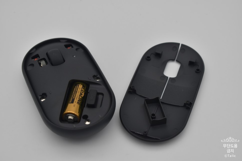 보통 하단부분에서 분리를 하지만 M350의 경우는 상단부를 열어서 분리를 시킵니다. 분리해서 보면 AA건전지 한개와 리시버가 들어있습니다.